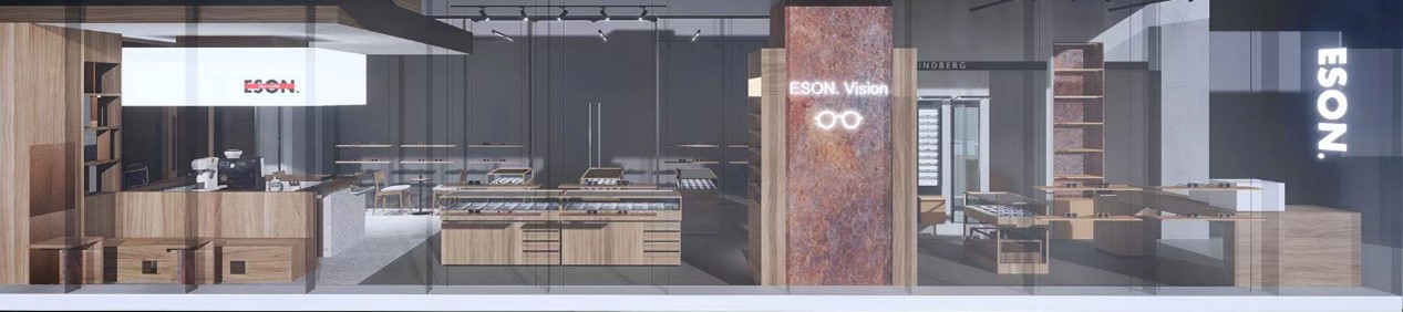 空间链接摒弃了“墙”的方式,而采用“框”的理念。不同的框景在不同尺寸下,以不同透明度、光影和肌理的介质呈现,在给顾客带来视觉引导的同时,传递出ESON的品牌观念,即:每一副眼镜都是一个全新的"视野"。