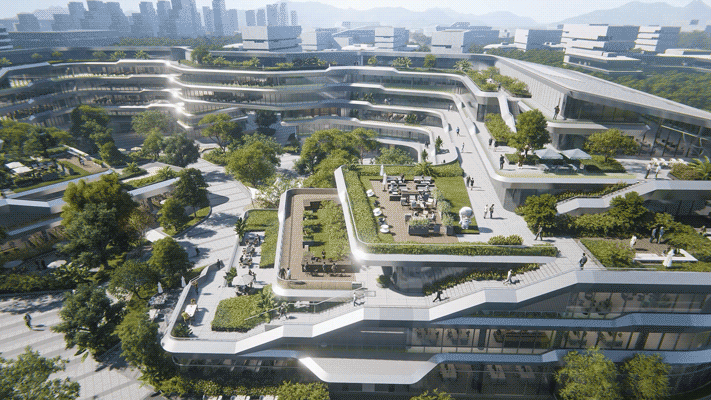 比如,杭州灵隐寺扩建是寺庙+文化交流中心的复合,科大讯飞全球总部是总部园区+校园的复合,象山石浦渔港古城活化更新是古镇+商业+文化的复合,成都卓越·点将台79号是超高层办公+大平层+商业街区的复合。