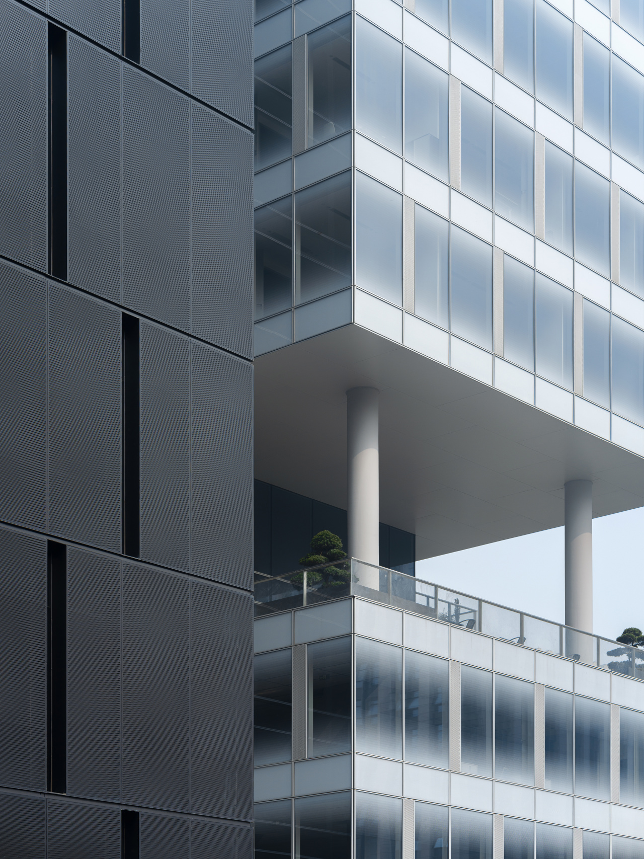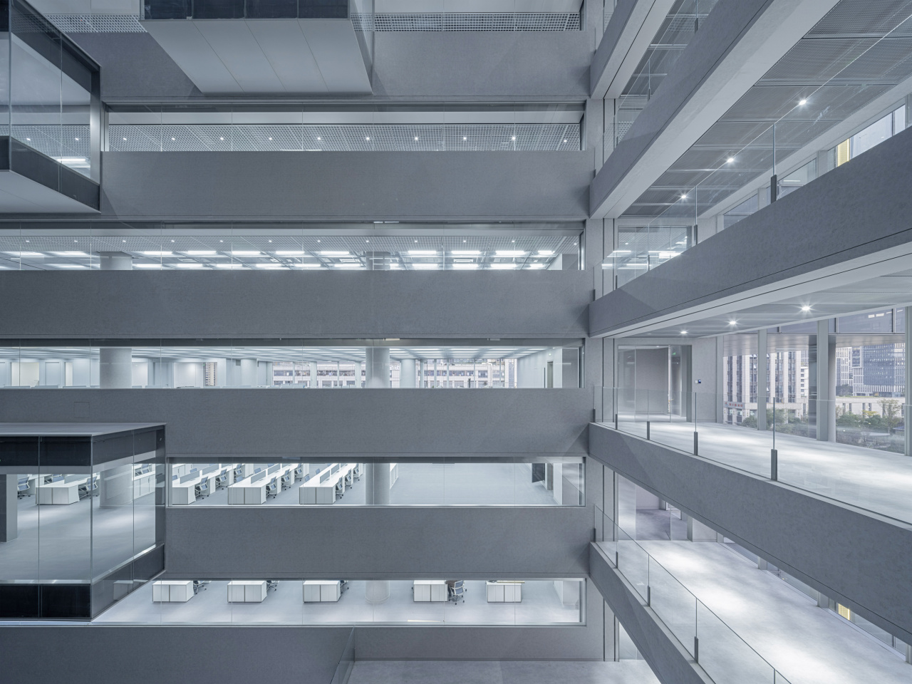 所以在设计中,一方面通过分离交通核的平面策略,形成服务功能的黑盒子、办公功能的白盒子和50米通高的共享中庭,让建筑回归功能主义;另一方面反复推敲建筑外表皮的单元玻璃幕墙设计,来帮助业主建立具有差异化的上市企业形象。