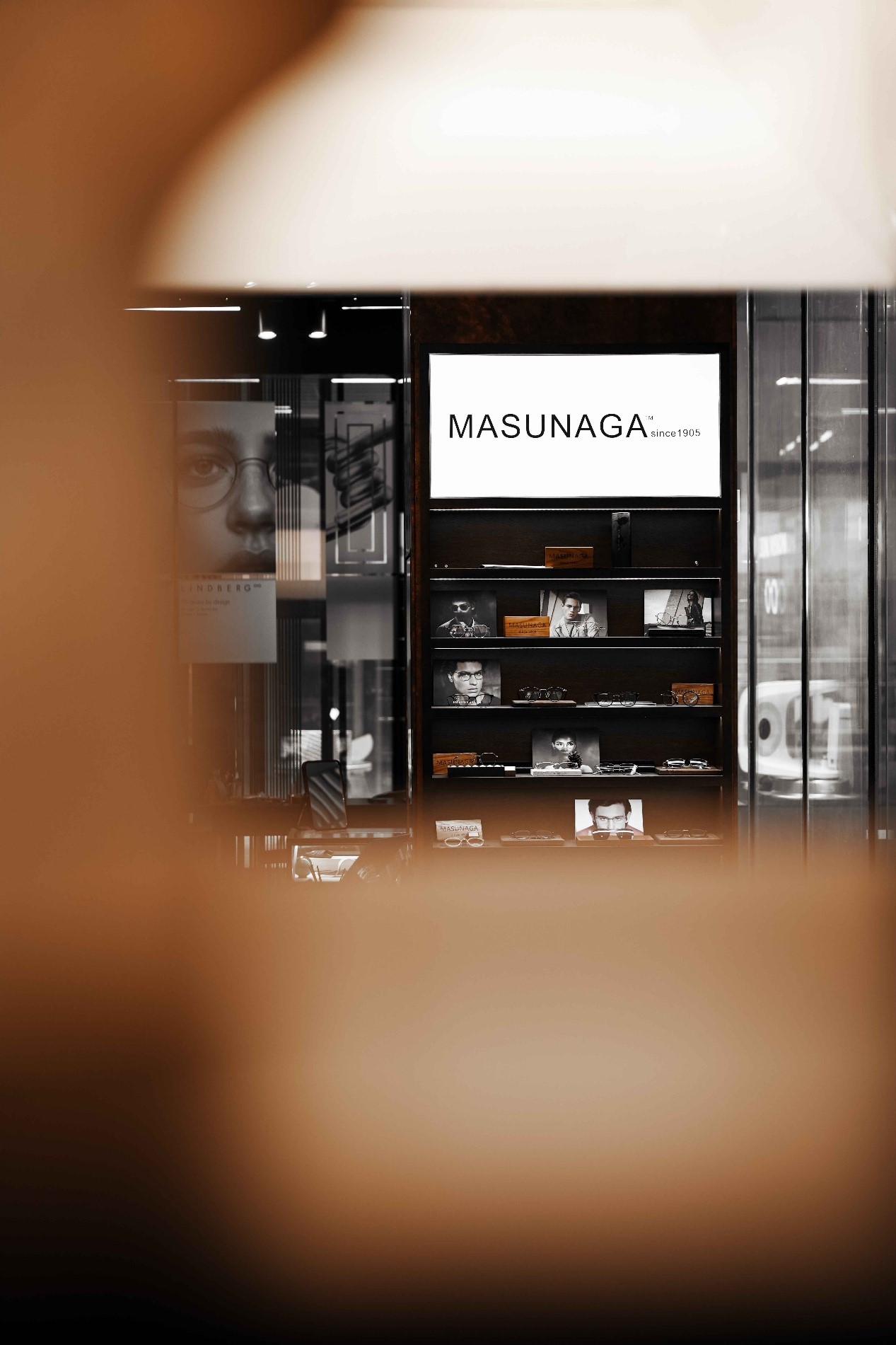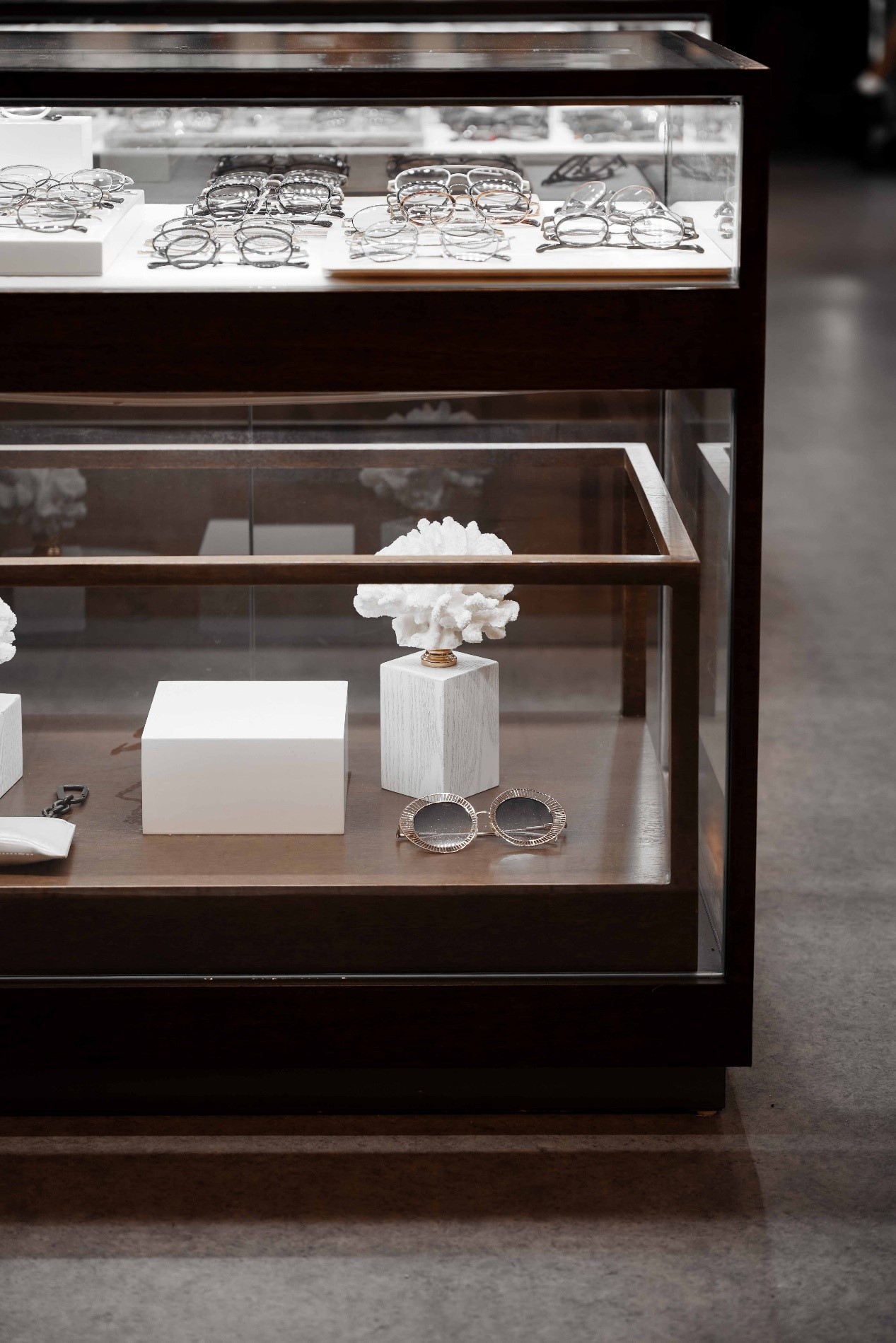 空间链接摒弃了“墙”的方式,而采用“框”的理念。不同的框景在不同尺寸下,以不同透明度、光影和肌理的介质呈现,在给顾客带来视觉引导的同时,传递出ESON的品牌观念,即:每一副眼镜都是一个全新的"视野"。