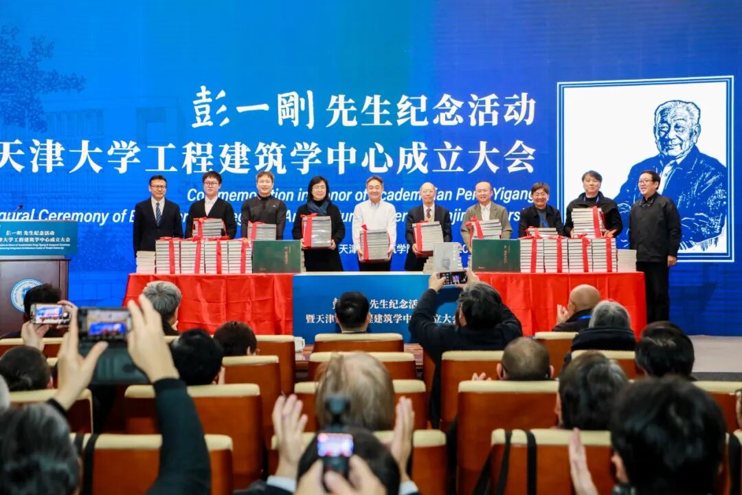 崔愷院士、李兴钢院士向亲属代表彭悦、校友代表天津华汇工程建筑设计有限公司顾问总建筑师欧阳植、政府代表四川省人民政府参事室原参事邱建、学生代表C&Y开朴艺洲设计机构董事长蔡明、企业代表天津华汇工程建筑设计有限公司总经理张一、教师代表天津大学建筑学院教授丁垚、高校代表天津大学图书馆副馆长孟少卿、在校生代表天津大学建筑学院学生董渠成分别赠书。